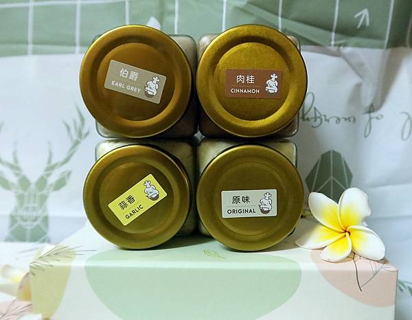 最後決定幫大家吃看看原味、好奇指數滿點的蒜香、小眾愛的肉桂跟茶香滿溢的伯爵