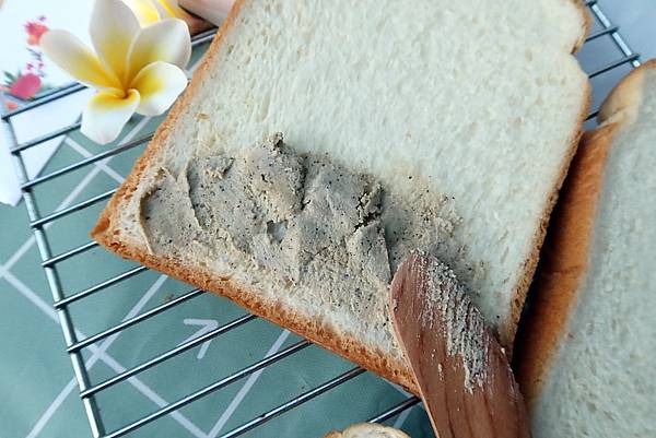 等奶酥軟化後塗抹在吐司上,可以直接吃也可以進烤箱(氣炸鍋)加熱一下