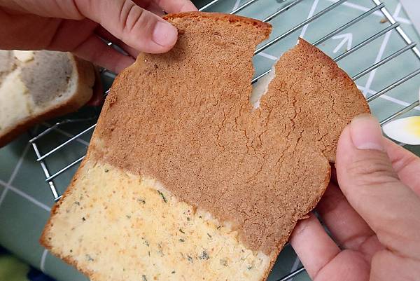 可以看到夾在奶酥裡的點點蒜粒跟綠色的巴西里