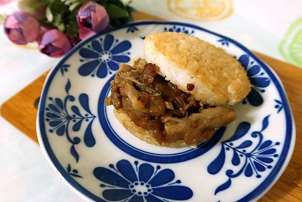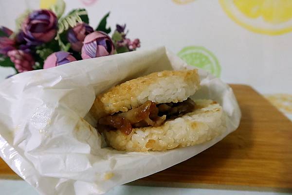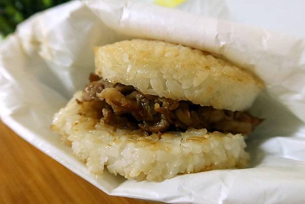 這款滋味偏向鹹香,整個米漢堡都吃的到薑燒的味道