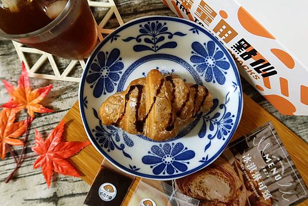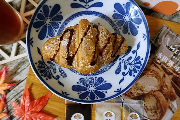 淋上香甜的巧克力醬撒上點點的糖粉,可頌完美變身