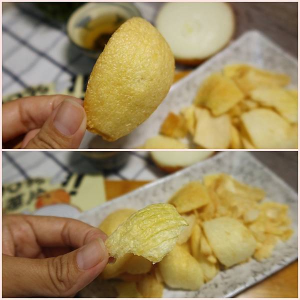 打開包裝小小的驚呼,真的是洋蔥啦!!!還可以看到脆片上的洋蔥紋路