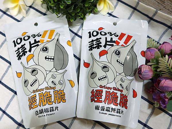 第一款先帶大家開箱100%蒜片,它有白胡椒跟椒香麻辣兩種口味