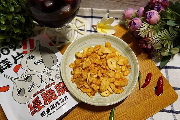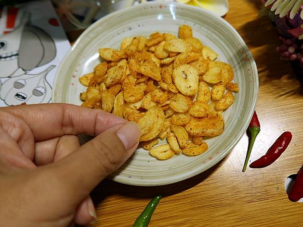再辣一點的椒香麻辣蒜片,薄脆小麻辣的蒜片下酒菜或是搭配白飯都不錯