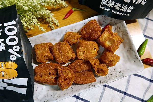 魚媽先來直接吃看看,炸得有點硬挺的椒香麻辣老油條