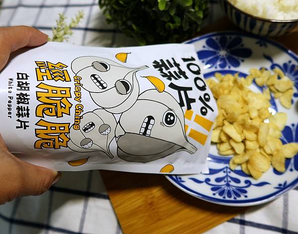 100%白胡椒蒜片,點點胡椒提味加上薄脆口感,這樣的蒜片想多吃幾片