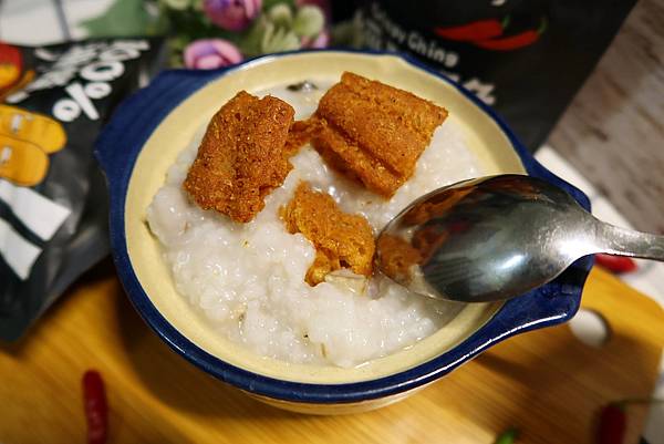 多了一點辣度而且口感超卡滋,隨自己的喜好泡浸粥品裡軟化了還是有香辣感