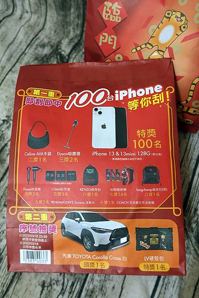 獎項有IPhone13&13mini 128g各50名、D牌吸吸塵器、吹風機、知名品牌後背包、手袋等等