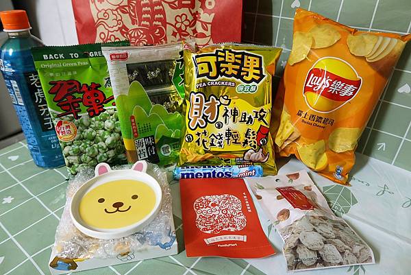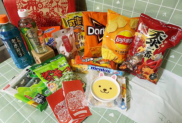 零食餅乾*6、飲料*1、驚喜小禮*1