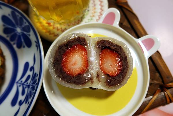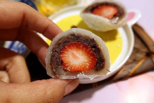 咬進冰涼軟軟的大福皮接著是酸酸的草莓最後用香甜的紅豆泥作結束