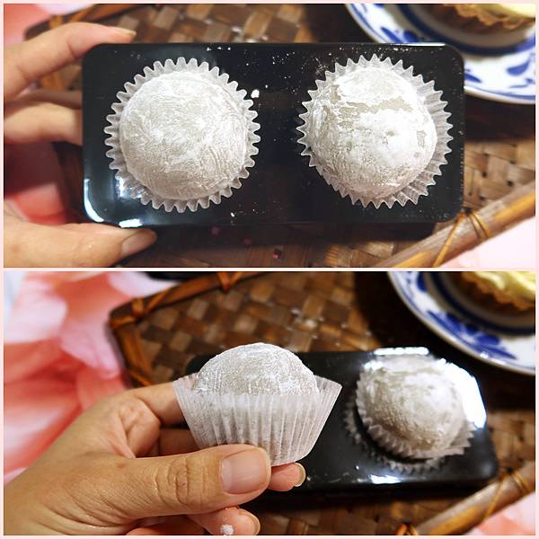 一盒兩面有兩顆分量很足的紅豆大福,建議吃的時候墊著杯子不然很容易掉粉阿