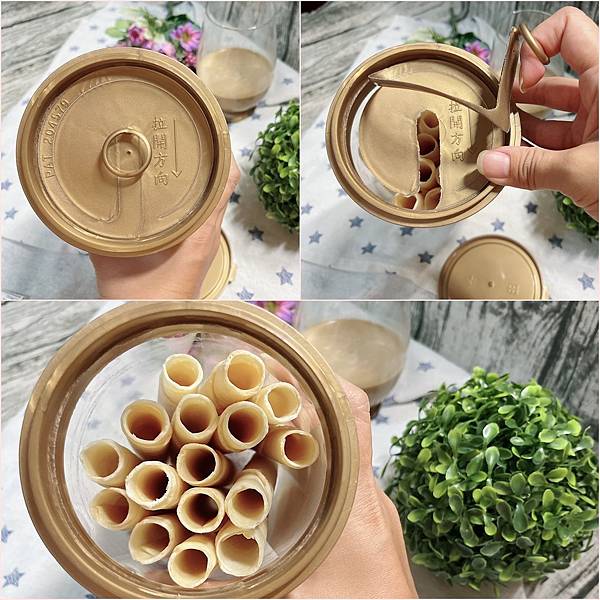 打開蓋子後有像是易開罐的瓶蓋,一開就可以獲得16隻蛋捲囉