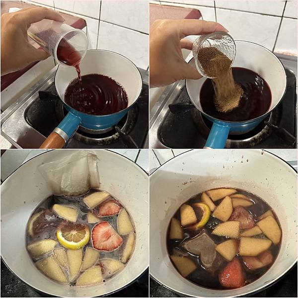 使用的紅酒、水果的種類跟份量、糖的份量都是變因