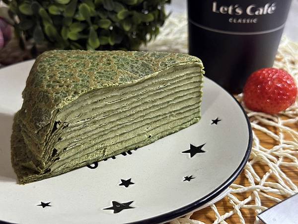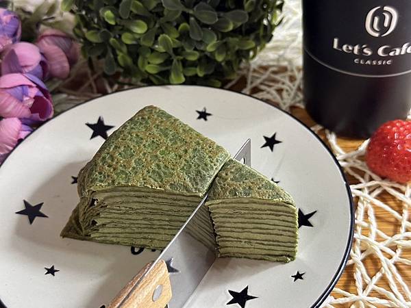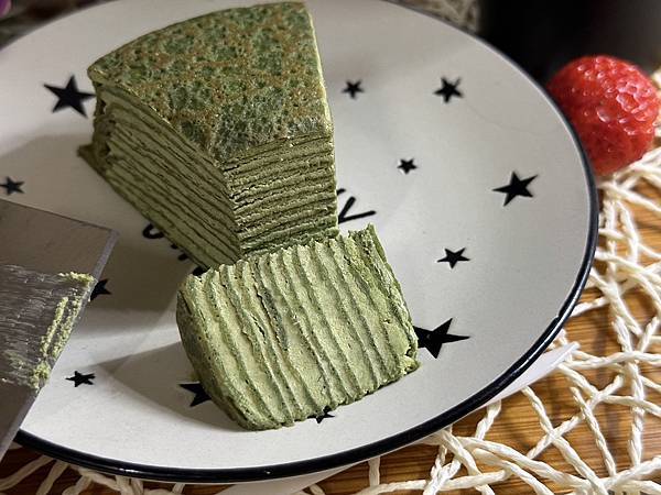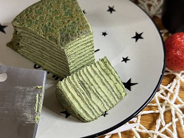 一層餅皮一層抹茶鮮奶油堆疊出層次感