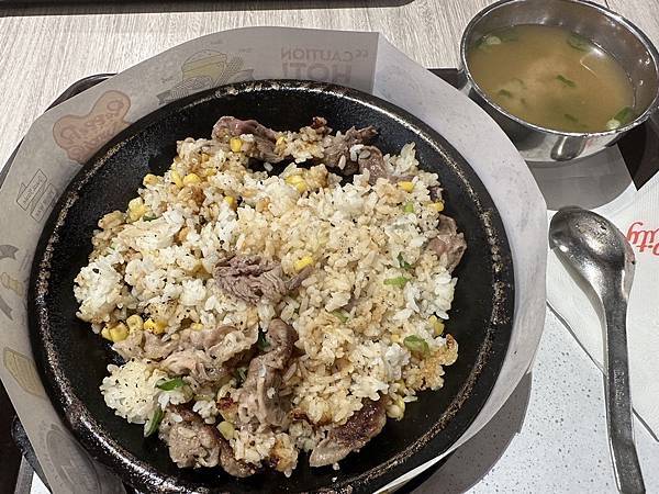 靠近鐵板的米飯有點鍋巴的脆感,牛肉片中規中矩沒有特別出色