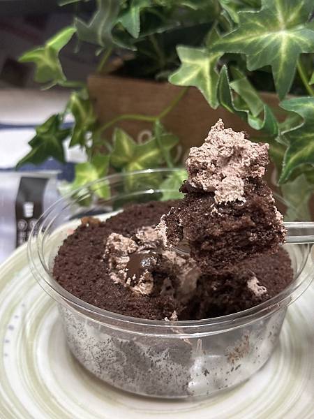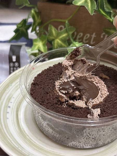 裡面有附上一支湯匙,他的巧克力鮮奶油的部分黏在底部沒辦法好好取出