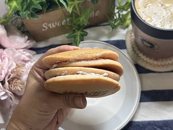他的夾餡不算多,還可以看到有些奶油外露出來