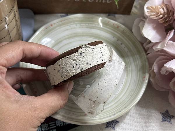 夾層的黑岩薄荷沒有平常薄荷巧克力冰淇淋的綠色