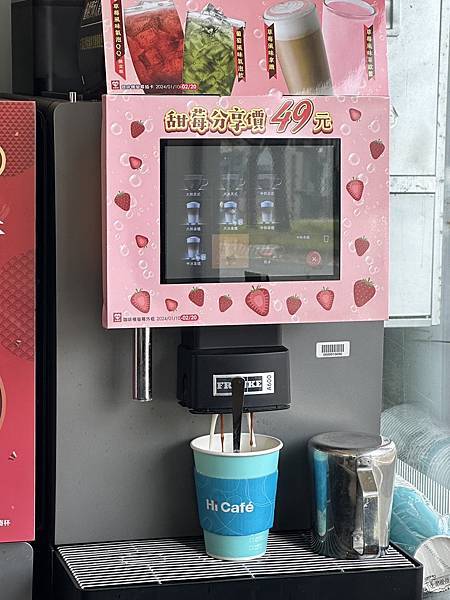 製作前會先放入一包草莓粉末接著就像一般拿鐵的流程