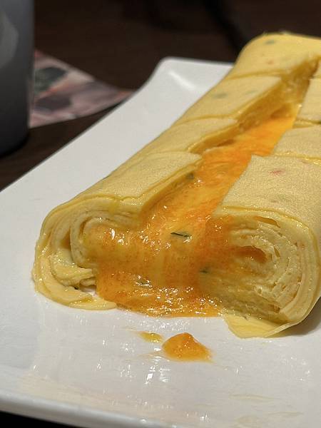 他有很明顯一層一層的蛋皮口感,中間是起司混著魚卵