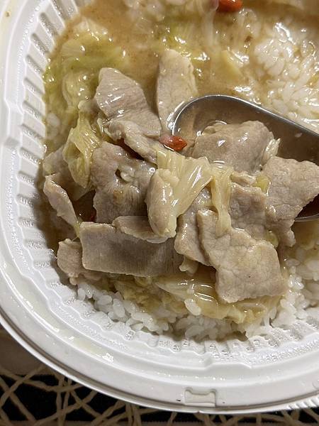 高麗菜口感偏軟,豬肉片還不錯吃口感不會太乾柴份量也多