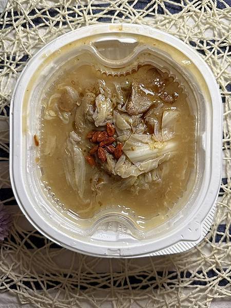 裡面的內容很簡單,芡汁、高麗菜、豬肉片跟點色的枸杞