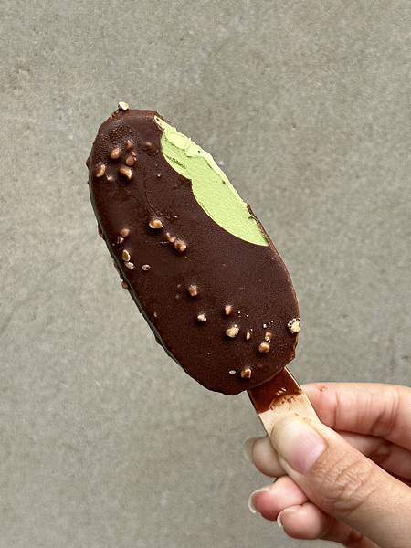 抹茶雪糕本身不會太甜,反而是外層的巧克力補了甜甜的感覺