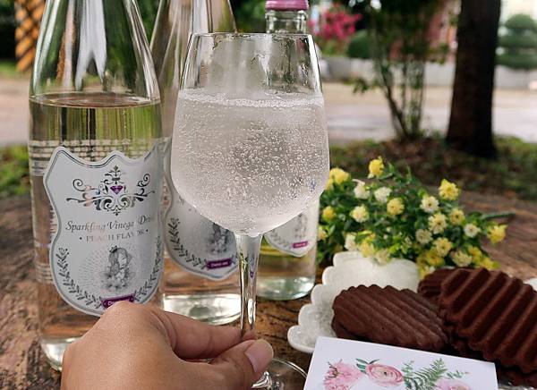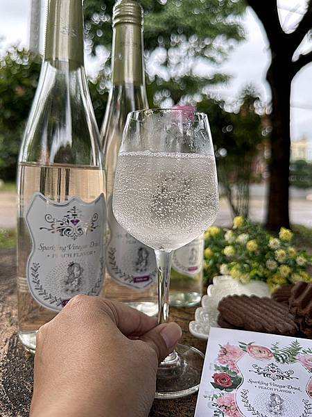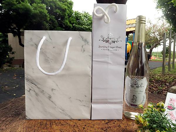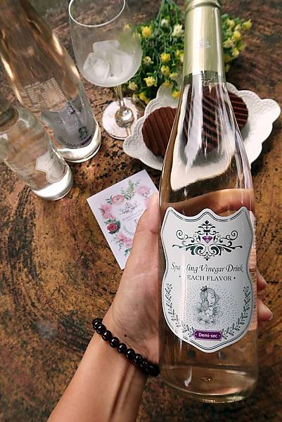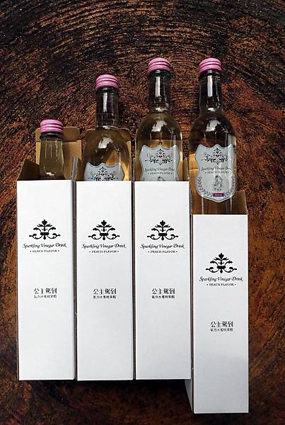 不說他是氣泡水蜜桃果醋單就包裝會覺得是香檳或是粉紅酒