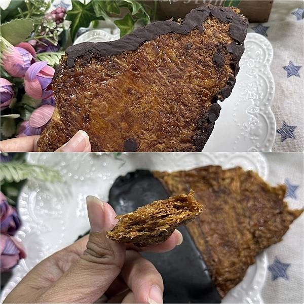 先折了一角下來手感蠻酥的,沒淋醬的部分表面有點甜甜的