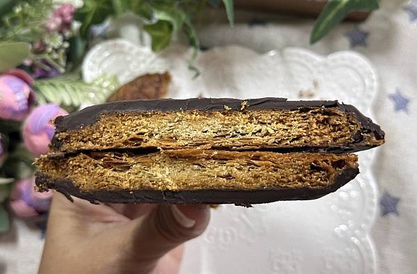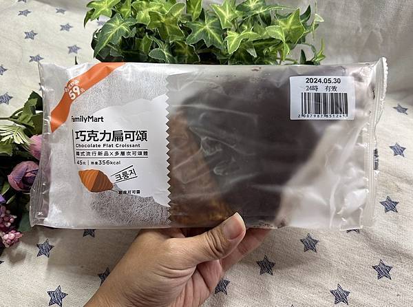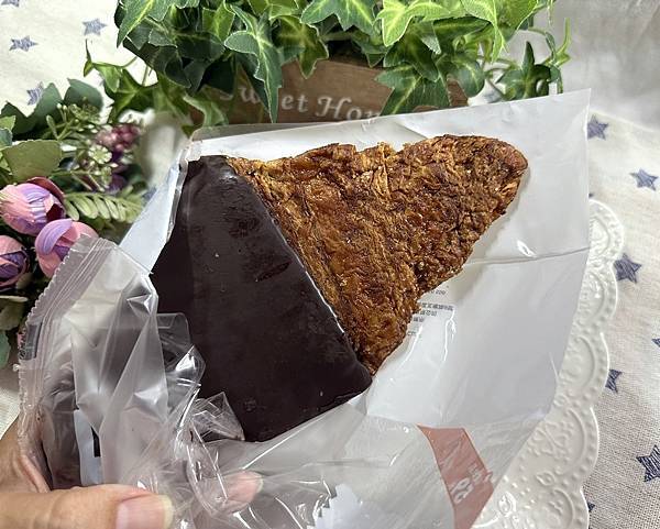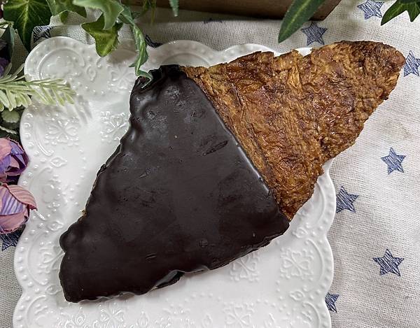 巧克力是偏甜的,完全壓過扁可頌本來的味道