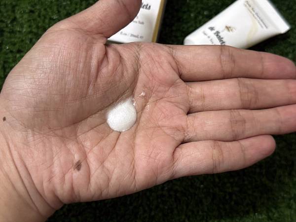 質地略稠帶點珍珠白光,起泡容易泡沫細緻