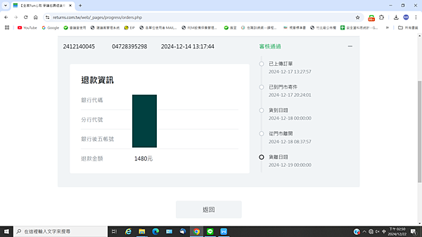 魚拔12/22日查詢發現審核通過,是放心可以退款拿回錢