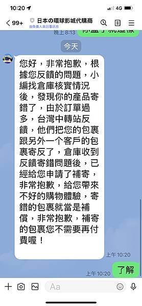 收到當下魚拔就傳給我,讓我帶著包裹去全家退貨