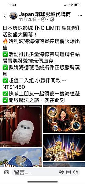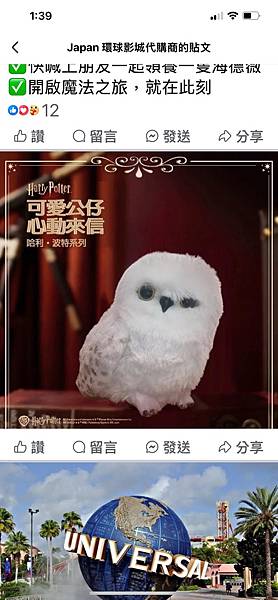 今天的主角是魚拔,他從FB看到有環球影城的代購貓頭鷹