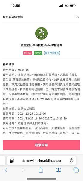 嘿嘿~之前參加到Mr.Wish在"脆"活動獲得VIP券