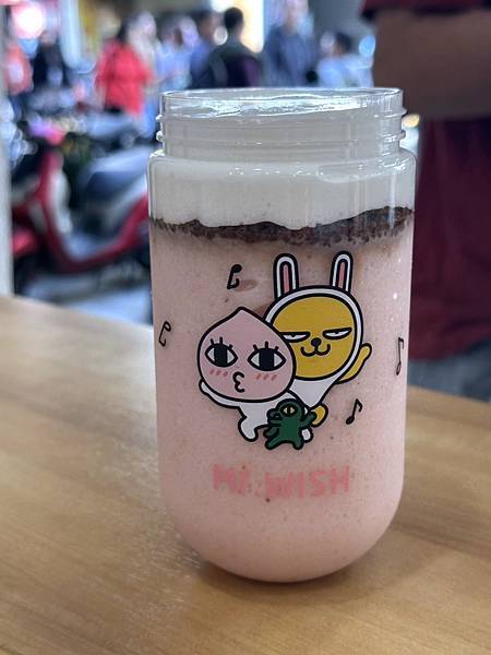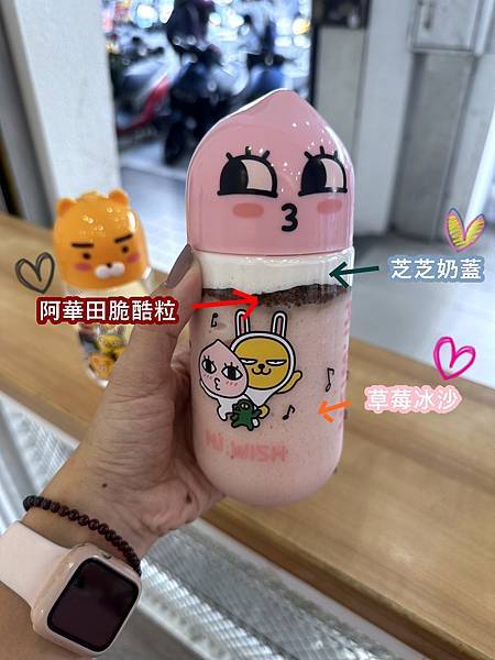 後面濕潤之後跟奶蓋、草莓冰沙混合又是另一種口感