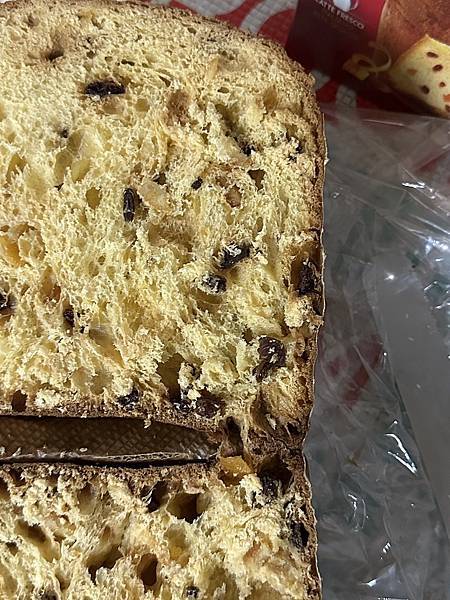 內裡意外的不是很乾還是蠻柔軟的口感,中間有滿滿的橙皮跟葡萄乾