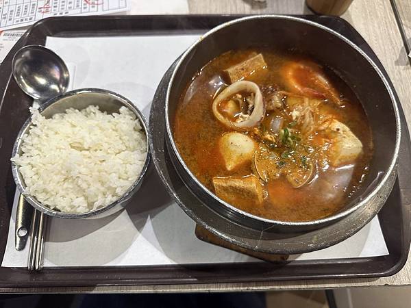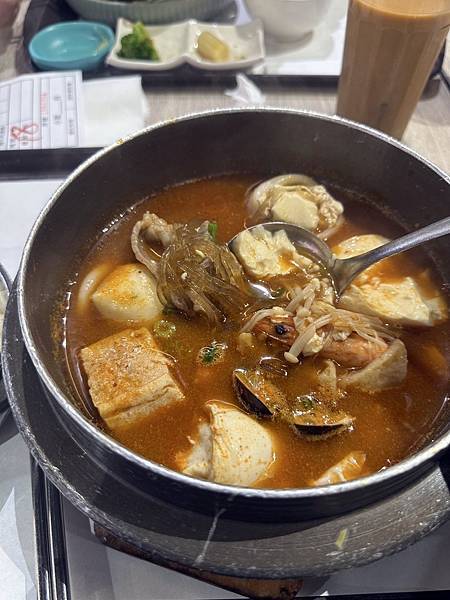 比較特別的應該是當天是平日去,廣告牆上海鮮豆腐鍋208元但結帳是198元