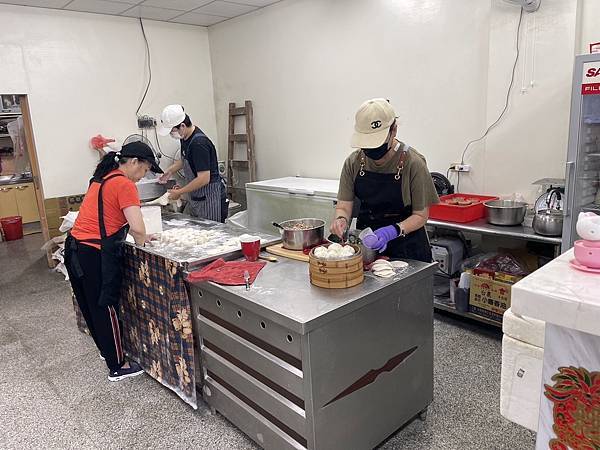 現場一旁可以看到有人正在製作,捏的包子準備上籠蒸
