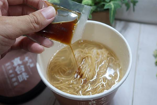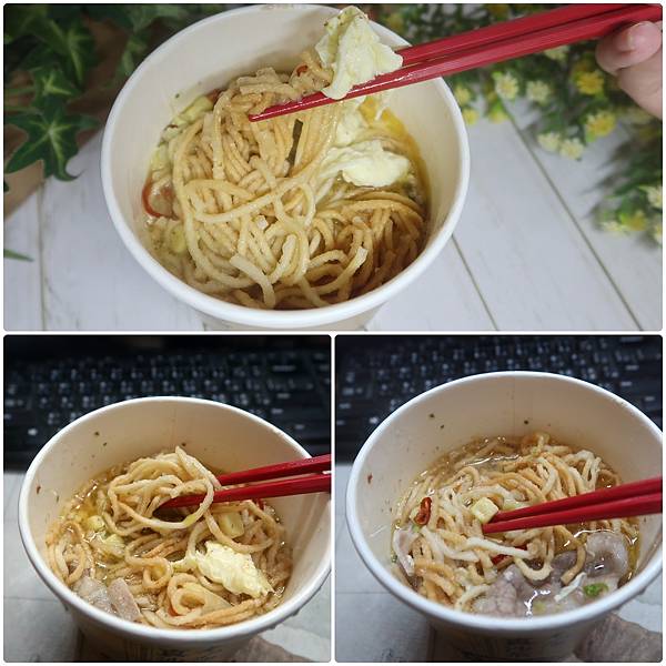 搭配的湯底一起享用,暖暖的蚵仔麵線風味杯麵很涮嘴
